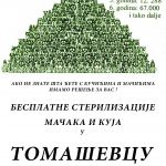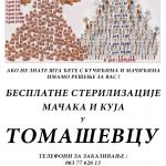 Saradnjom brojnih udruženja za zaštitu životinja i MZ Tomaševac, u narednom periodu će se u Tomaševcu vršiti besplatne sterilizacije ženki mačaka i pasa.